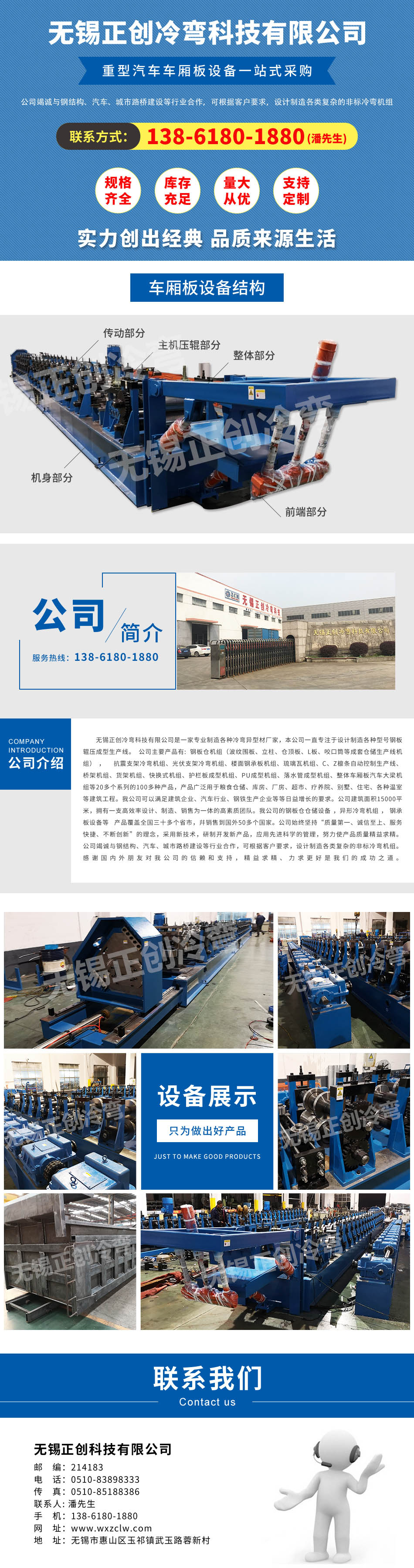 無錫正創(chuàng)冷彎科技有限公司1995年成立,占地面積約15000平方米,專業(yè)致力于冷彎型鋼、非、 標(biāo)鋼結(jié)構(gòu)產(chǎn)品的研發(fā)、設(shè)計(jì)、制造、銷售、外貿(mào)于一體的冷彎型鋼設(shè)備的專業(yè)廠家,并遠(yuǎn)銷東亞、南亞、東盟、東歐、獨(dú)聯(lián)體、大洋洲、南美、拉美、中東、南太平洋、非洲等地。我們期待著與您的合作,歡迎致電咨詢和來廠考察。zclw13目前我公司已成功制造出以下冷彎設(shè)備: